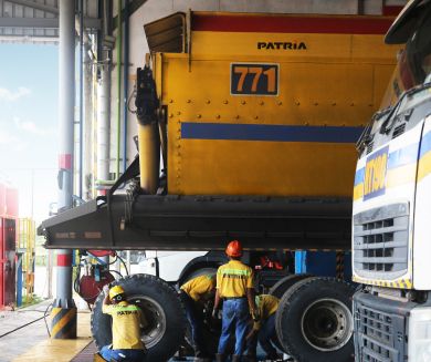 The PATRIA XPRO Semi Trailer Side Tipper is designed for efficient and easy unloading of bulk materials with its side tipping feature.